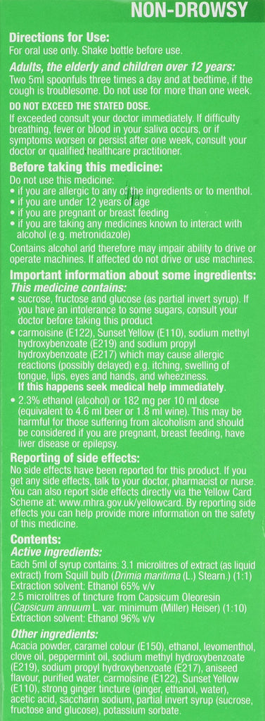 Two 5ml spoonfuls three times a day and at bedtime if the cough is troublesome.