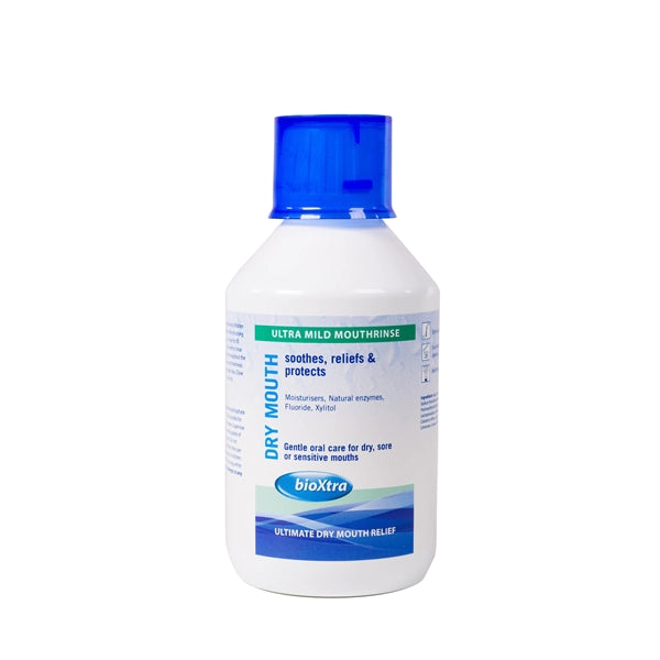 BioXtra Moisturising Anti-Plaque Mouthrinse has a mild flavour, is alcohol free and is safe for long-term prevention of problems. It contains xylitol, salivary enzymes and colostrum extract and can be used at anytime to refresh, moisten and cleanse the mouth.