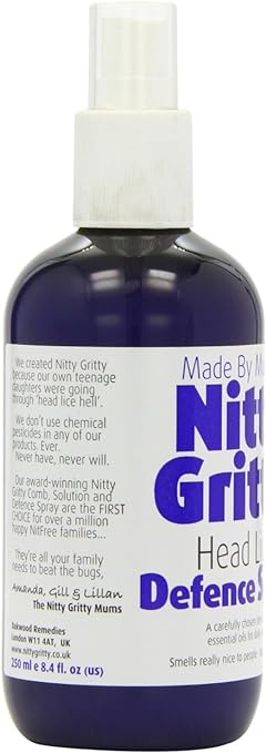 - The Nitty Gritty Defence Spray is designed to protect the entire family from head lice and nits
