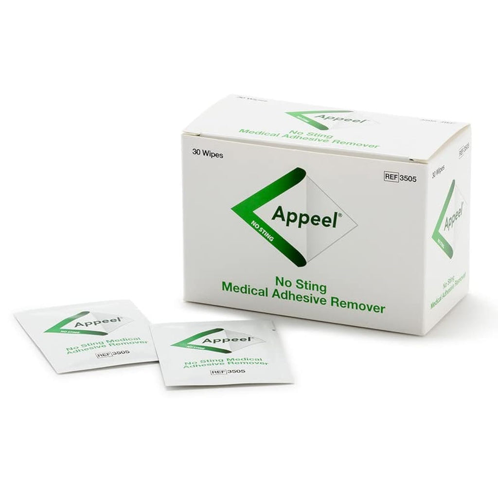 Clinimed Appeel Medical Adhesive Remover Wipes is a silicone-based product that effectively and gently removes adhesive stoma appliances from the skin without causing damage or discomfort. This alcohol-free, no sting formula is also gentle on sore skin and does not dry it out. Its skin-friendly formula is free of latex, preservatives, and fragrance. The wipes dry quickly, leaving no residue and preparing the skin for a new stoma bag without affecting its application or adherence. Clinimed Appeel wipes come individually packaged, making them convenient for at-home and on-the-go use.