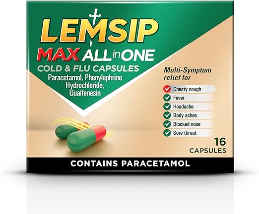 - Lemsip All In One 16 Caps is a pharmacy product that targets the symptoms of colds and flu