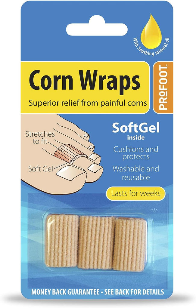 Profoot soft gel corn wraps are designed to give full wrap-around protection. By reducing virtually all pressure and friction to the skin whilst softening the corn and the surrounding areas with medical grade mineral oil, they can dramatically aid in the removal of even the toughest corns whilst helping to prevent new ones.