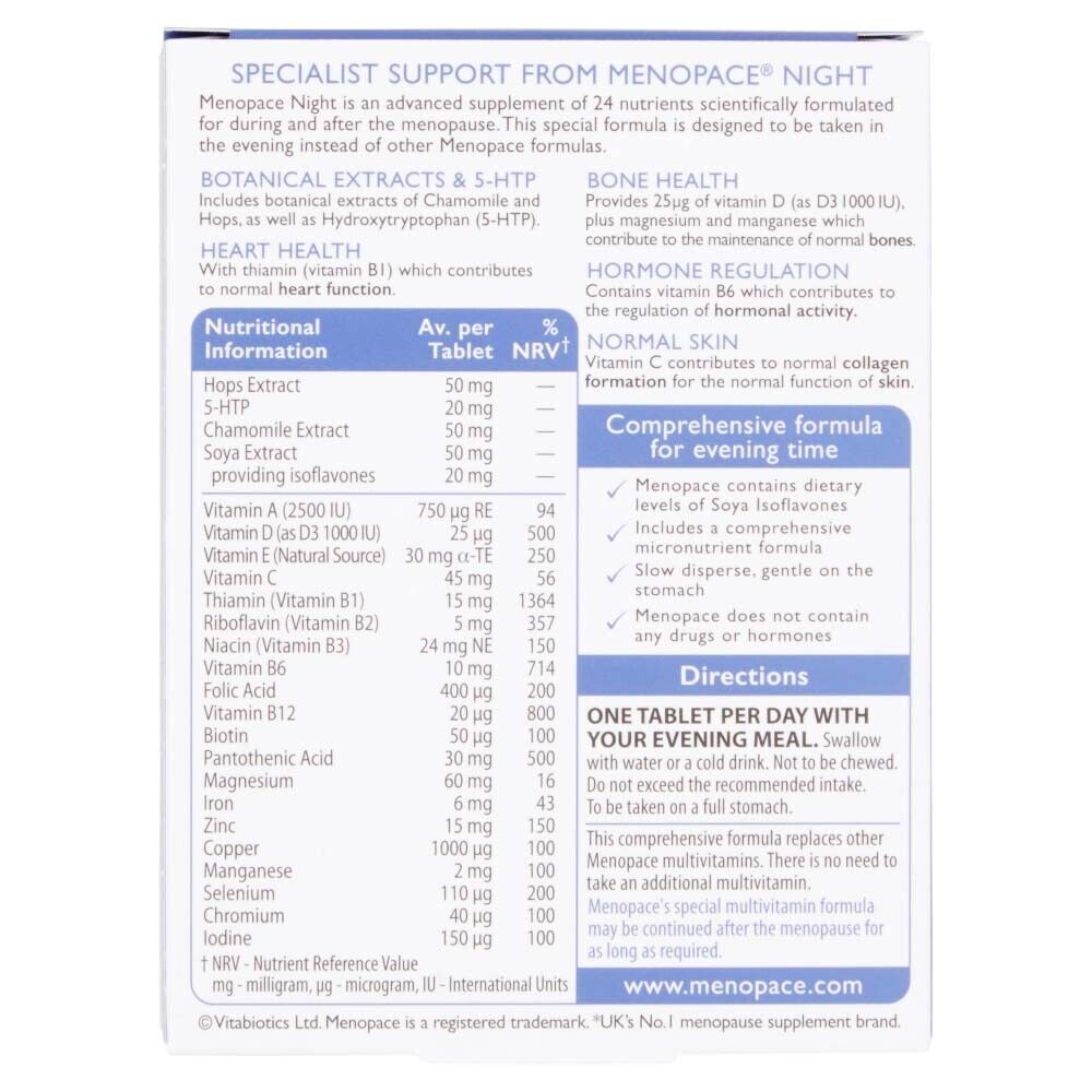This comprehensive formula replaces other Menopace multivitamins. There is no need to take an additional multivitamin. Menopace's special multivitamin formula may be continued after the menopause for as long as required.